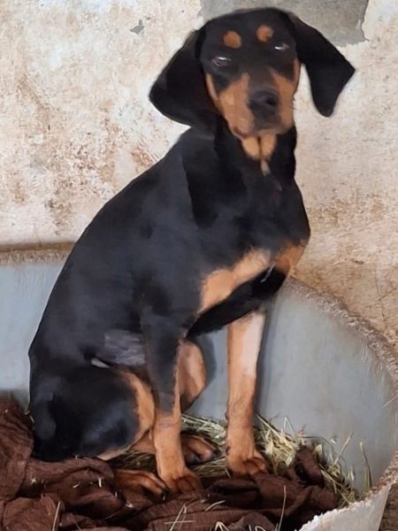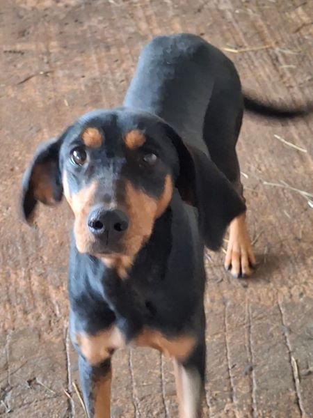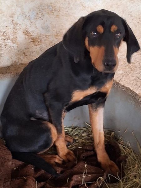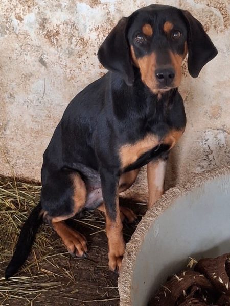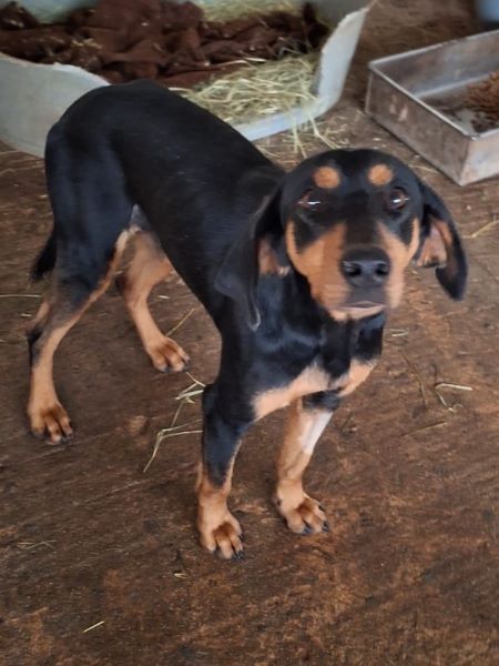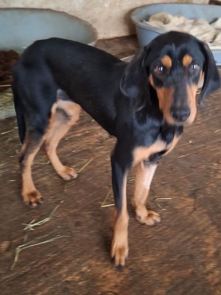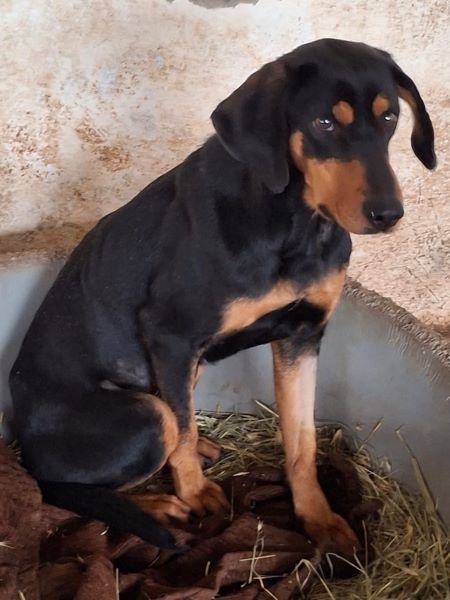 Frida ist eine hübsche Hundedame, die optisch etwas an einen Pinscher erinnert. Das schwarze Fell mit den rostbraunen Abzeichen verleiht ihr eine gewisse Eleganz. Zudem hat Frida eine tolle mittlere Größe. Unseren Helferinnen und Helfern zeigt sie sich stets freundlich und aufgeschlossen. Sie fordert gern zum Spielen auf und versteht sich auch mit den anderen Hunden vor Ort gut.