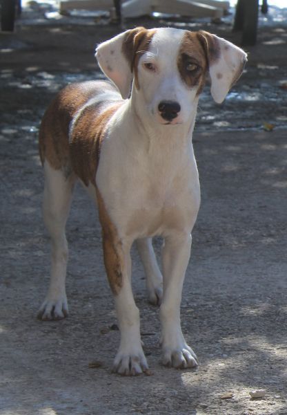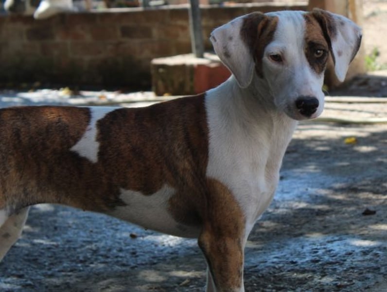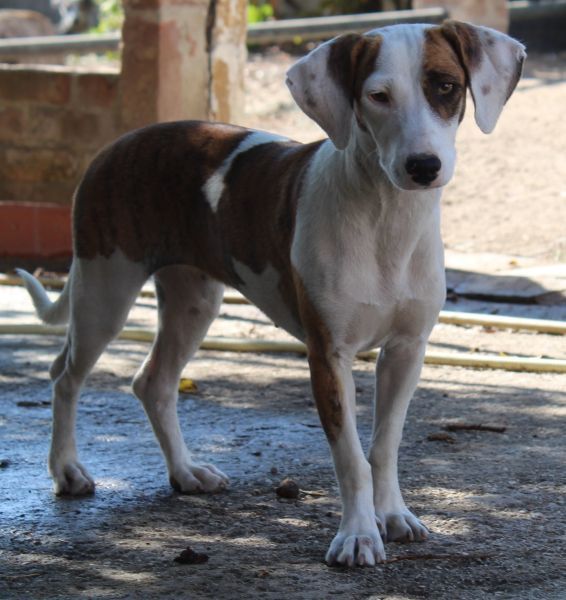 Nivara ist eine zierliche, hübsche Hündin mit kurzem Fell und einer harmonischen Mischung aus Weiß und Braun. Sie zeigt sich verträglich mit den anderen Hunden auf der Pflegestelle und ist Menschen gegenüber freundlich, aber zurückhaltend. Mittlerweile konnte sie sich jedoch schon ein wenig öffnen.