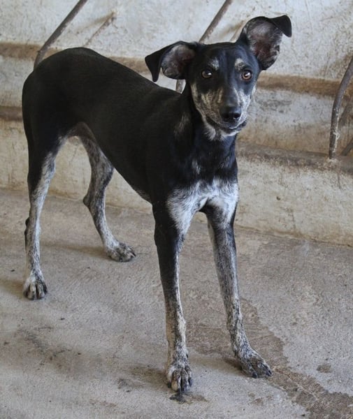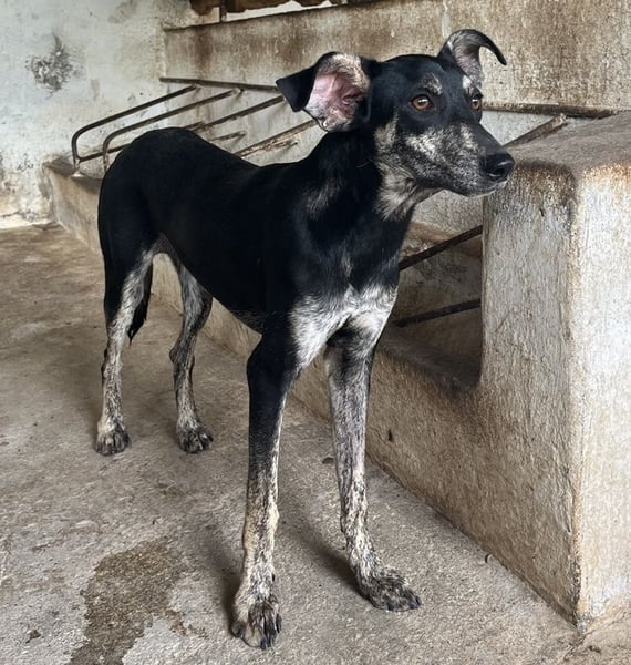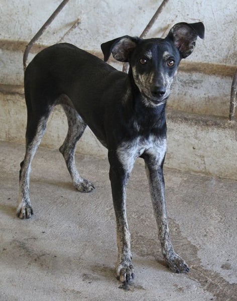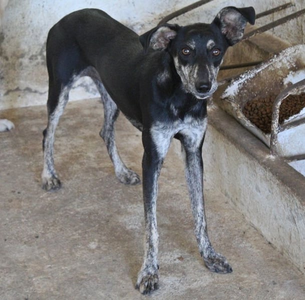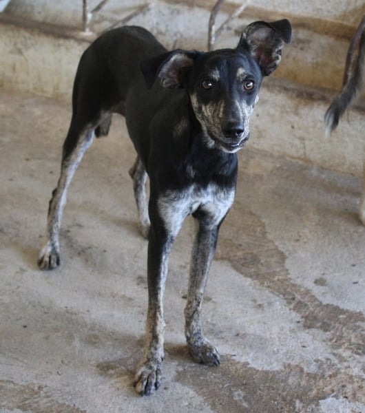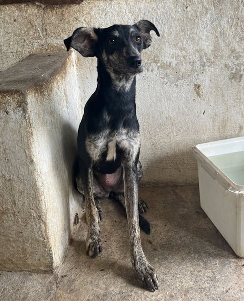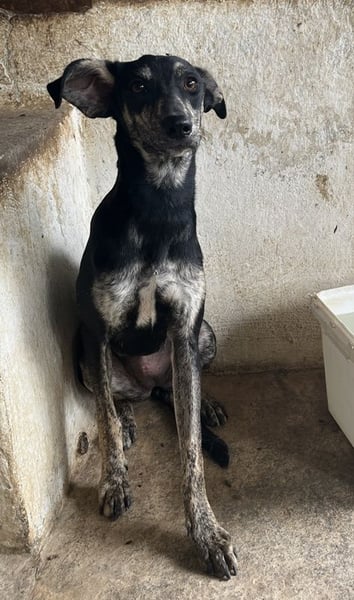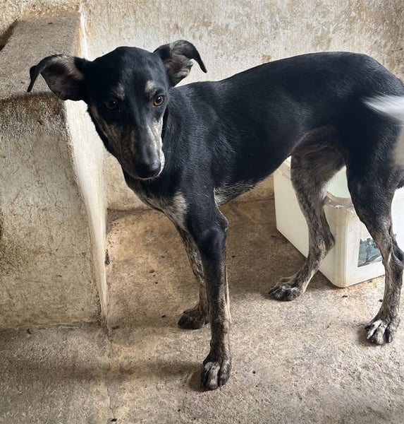 Savina ist eine zarte, langbeinige Hündin mit einem kurzen, schwarz-gestromten Fellkleid. Die witzigen Dobby-Ohren verleihen Savina einen ganz besonderen Charakter. Sie braucht noch ein wenig Zeit, um Vertrauen zu ihren Bezugspersonen aufzubauen. Erschwerend kommt hinzu, dass auf der Pflegestelle viele andere Hunde betreut werden und Savina so natürlich nicht die Zuwendung erfahren kann, die sie aktuell bräuchte. Savina benötigt Menschen, die ihr mit Ruhe, Geduld und viel Zeit zeigen, dass ihr Leben auf der Flucht nun endlich ein Ende hat. Sie muss erst noch lernen, sich zu öffnen, was zu Beginn natürlich einiges an Fingerspitzengefühl erfordert. Wir sind uns aber sicher, dass da draußen die richtigen Menschen auf Savina warten, die sie verstehen und genau wissen, wie sie ihr helfen können, damit sie sich zu einer selbstbewussten kleinen Begleiterin entwickeln kann. Falls Sie Lust und viel Zeit haben, dieses Abenteuer gemeinsam mit Savina anzugehen, melden Sie sich doch gerne zeitnah bei uns. Wir können es kaum erwarten, die süße Hündin auftauen zu sehen.