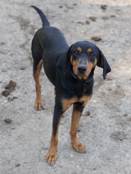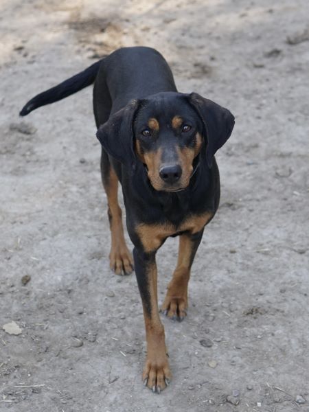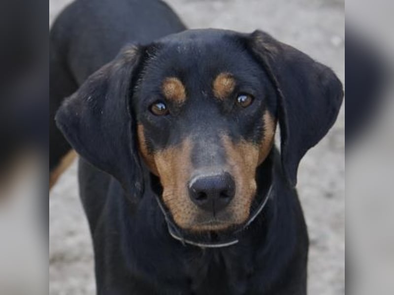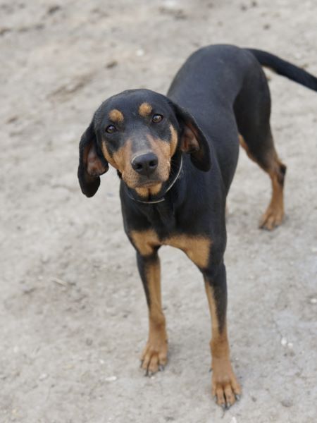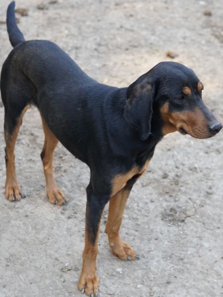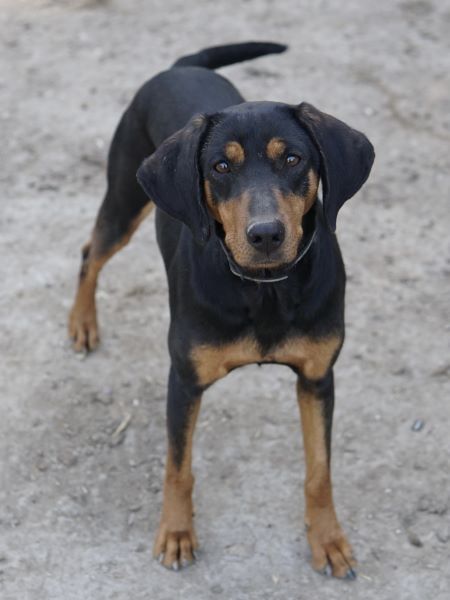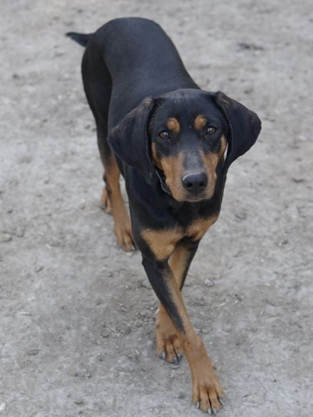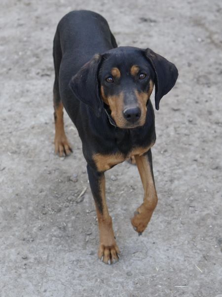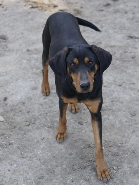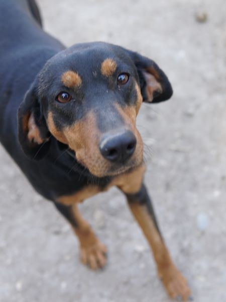Frida ist eine hübsche Hundedame, die optisch etwas an einen Pinscher erinnert. Das schwarze Fell mit den rostbraunen Abzeichen verleiht ihr eine gewisse Eleganz. Zudem hat Frida eine tolle mittlere Größe. Unseren Helferinnen und Helfern zeigt sie sich stets freundlich und aufgeschlossen. Sie fordert gern zum Spielen auf und versteht sich auch mit den anderen Hunden vor Ort gut.