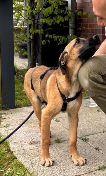 Im Umgang mit einem souveränen Hund zeigt Dickie ein sehr schönes Sozialverhalten. Sie orientiert sich gut, nimmt klare Kommunikation an und lässt sich durch einen stabilen Hund sicher führen. Ein vorhandener, ruhiger Ersthund könnte ihr daher besonders dabei helfen, sich im Alltag schnell einzufinden und weiterzuentwickeln.