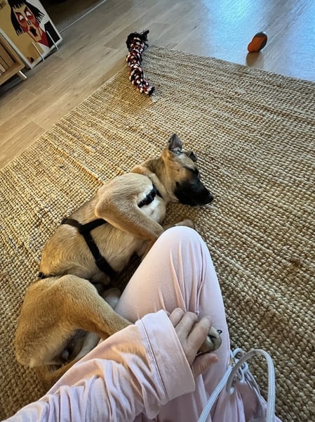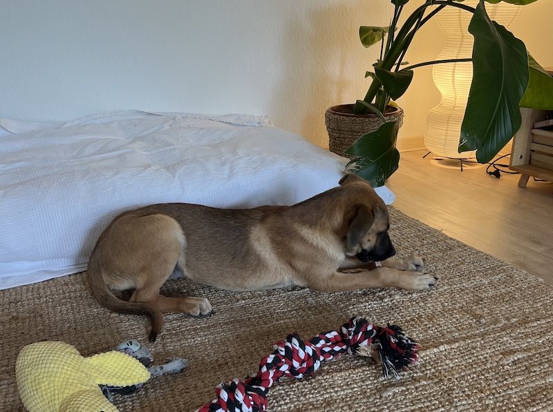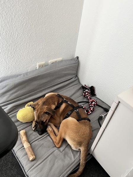 Aktuell ist sie altersentsprechend aktiv, aufmerksam und gerne in Bewegung. Sie zeigt viel Entdeckungsdrang, probiert Dinge aus und ist interessiert an ihrer Umgebung. Gleichzeitig bringt sie bereits eine gute Fähigkeit zur Selbstregulation mit: Nach dem Spaziergang, Aktivitäten oder einem Spiel findet sie eigenständig zur Ruhe, legt sich von selbst in ihr Körbchen oder an einen ruhigen Platz und schläft ein.