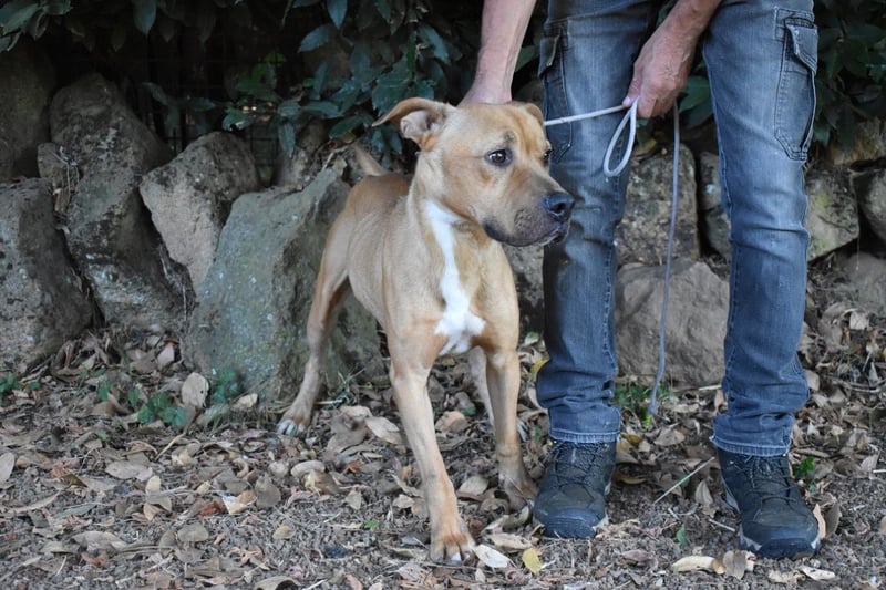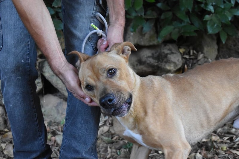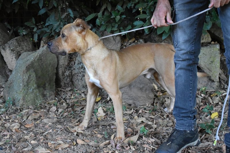 Ich sehe einen extrem dünnen Rüden, der einfach nur über das, was er jenseits seiner Zelle sehen darf, staunt und mit glänzenden Augen eine Ahnung (oder Erinnerung) zu haben scheint, dass das, was ihm seit zwei Jahren tagtäglich geboten wird, nicht alles auf dieser Welt ist. Er scheint den Menschenkontakt sehr zu genießen, aber auch bereits gewohnt zu sein. An der Leine laufen kann er, was immer ein wenig ein Indiz dafür ist, dass er vielleicht einmal eine Familie hatte.