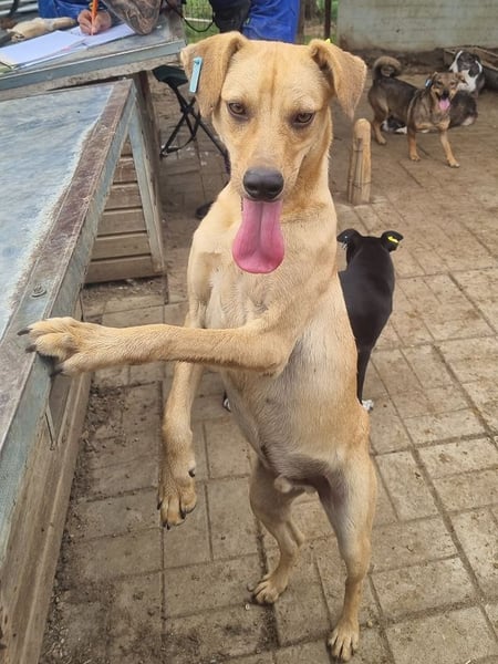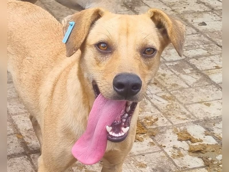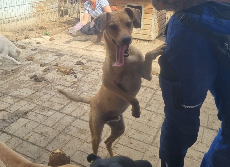 Seit dem Frühjahr 24 ist dieser nette, junge Rüde schon im Tierheim und ist dort vollkommen unterfordert. Daniel Düsentrieb, wäre eigentlich ein passender Name, denn vor lauter Freude über unseren Besuch flippte und düste der hübsche Kerl um uns herum. Es gab natürlich immer mal eine Pause um fröhlich auf unseren Schoß zu springen und sich kuscheln zu lassen. Trotz soviel Traurigkeit und den mehr als harten und trostlosen Umständen, lässt sich der goldfarbene Blitz nicht unterkriegen. Foxy muss bald schon seinen zweiten Geburtstag im Tierheim feiern, ohne jemals in Freiheit getobt zu haben oder in einem kuscheligen Körbchen geschlafen zu haben. Dabei hat er soviel zu geben und eignet sich perfekt für sportliche Menschen, die einen aktiven Begleiter suchen. Mit liebevoller Konsequenz und klaren Regeln wird er sicherlich auch zur Ruhe kommen können.
