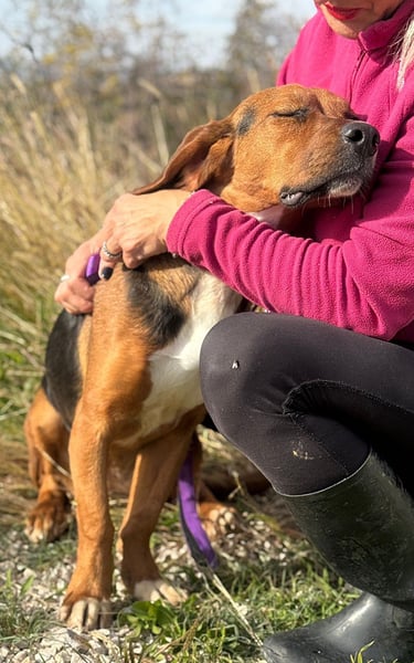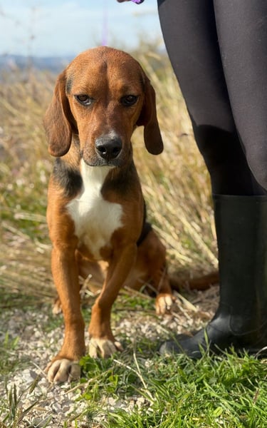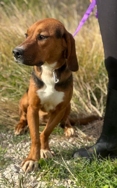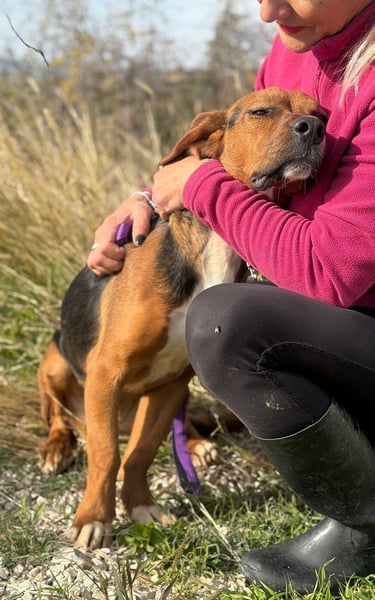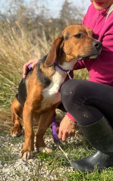 Magda ist ein Jagdhundmix in besonders schönem Tricolor. Für sie wünschen wir uns Menschen, die ihr Zeit geben anzukommen. Die ihr Liebe schenken und die Gewissheit, willkommen zu sein. Ein ruhiges Umfeld, gerne ein eigener Garten und ausreichend Bewegung wären für Magda genau richtig. Gerne darf bereits ein Ersthund im neuen Zuhause leben.
