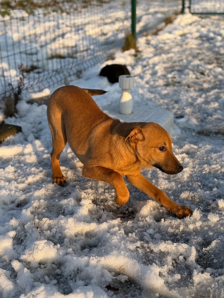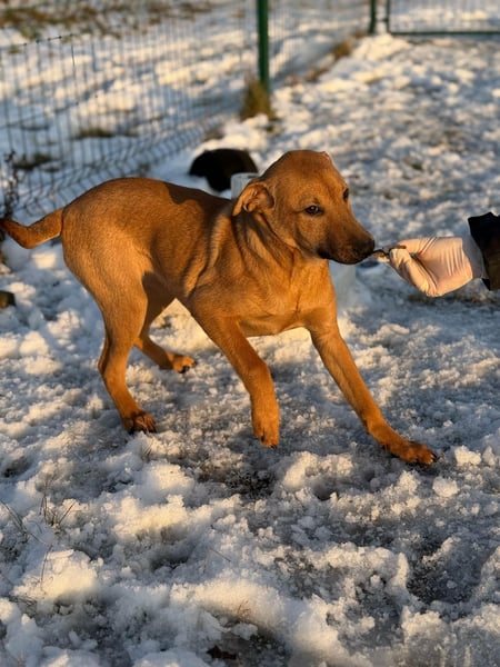 Tequila ist eine etwa 5 Monate alte Mischlingshündin mit einem großen Herzen für Menschen. Sie stammt aus einem Nachbardorf, wo sie auf einem verlassenen Hof geboren wurde. Kurz vor Wintereinbruch konnten wir sie gemeinsam mit ihren beiden Geschwistern retten. Ihre Mutter ist eine unkastrierte Hündin, die regelmäßig ausbüxt und bereits mehrere Würfe hatte – es bestand leider die Gefahr, dass die Welpen eingeschläfert würden.