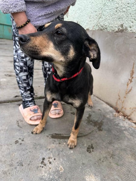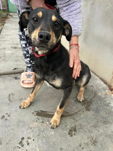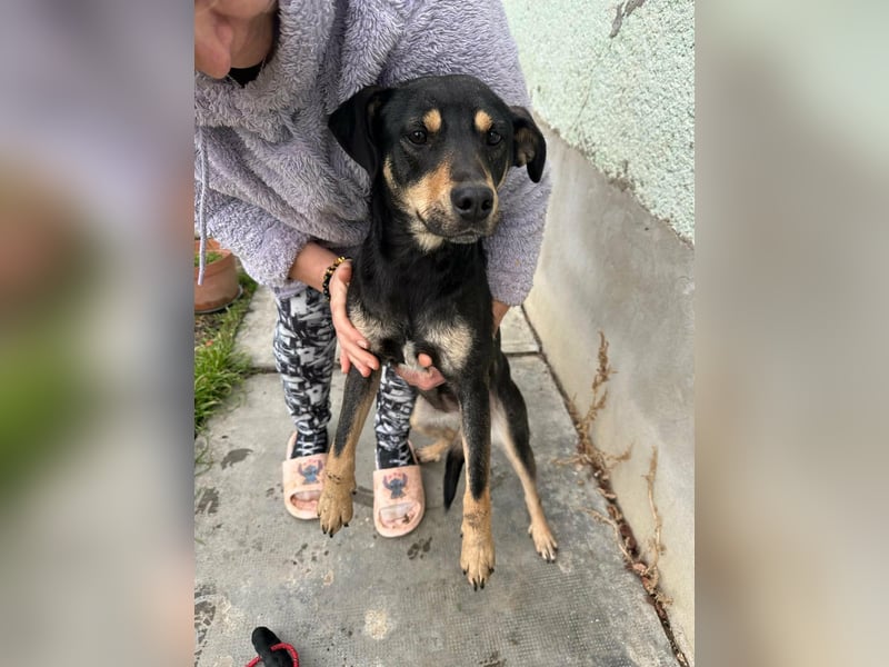 Mirella rannte verängstigt die Hauptstraße zwischen Sarkad und Doboz entlang. Eine tierliebe Anwohnerin aus Sarkad konnte sie schließlich sichern. Da der örtliche Hundefänger nicht kam, wandte man sich hilfesuchend an uns – und so begann Mirellas Weg in die Sicherheit.