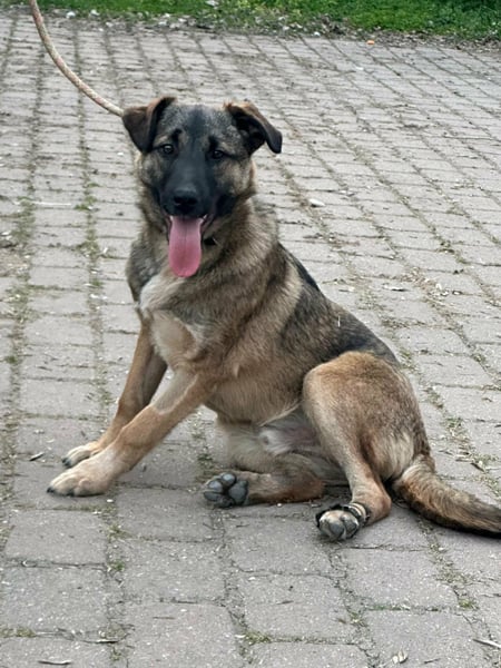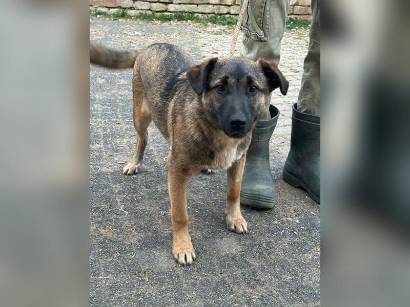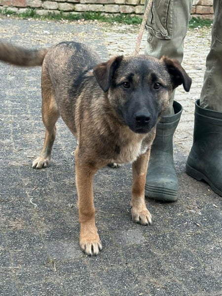 Manó ist ein kleiner, verspielter Junghund, geboren am 11. September 2024, derzeit etwa 50 cm groß, ein herzensguter Mischlingshund.