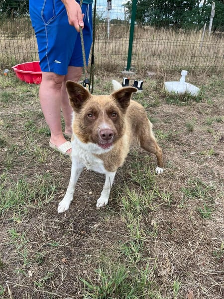 Optisch ist sie ein kleines Wunder: Mit ihrem rötlichen Fell, dem fuchsartigen Gesicht und ihrer eleganten Statur (ca. 50 cm Schulterhöhe) erinnert sie an einen wunderschönen, übergroßen Fuchs – klug, wachsam und doch sanft.