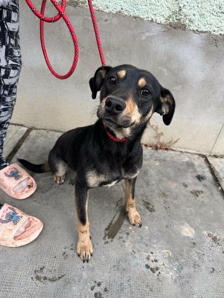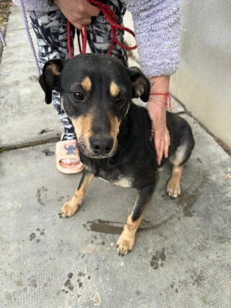 Mirella rannte verängstigt die Hauptstraße zwischen Sarkad und Doboz entlang. Eine tierliebe Anwohnerin aus Sarkad konnte sie schließlich sichern. Da der örtliche Hundefänger nicht kam, wandte man sich hilfesuchend an uns – und so begann Mirellas Weg in die Sicherheit.