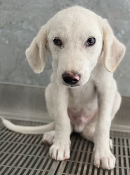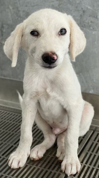 Unser Paco hat ein tolles, weißes Fell, welches in einem besonderen Kontrast zu seinen dunklen Kulleraugen steht. Ein Auge war leider verletzt, als er gefunden wurde. Es ist aber jetzt zum Glück abgeheilt und er ist nun umso mehr bereit, mit voller Kraft voraus in seine Reise ins Glück zu starten!