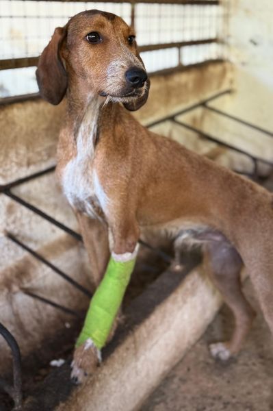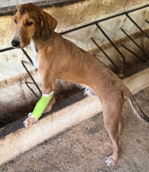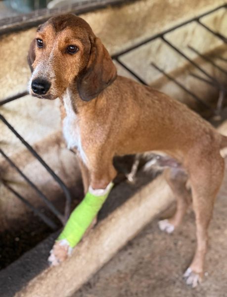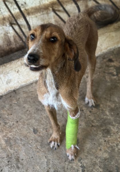 Sonstiges: evtl. Jagdhund-Mix, hat ein gebrochenes Bein