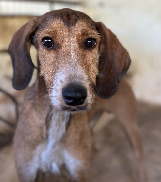 Aufgrund seiner Optik kann es sich bei Muskatnuss ggf. um einen Jagdhund-Mischling handeln. Gerne informieren wir Sie vorab über mögliche Besonderheiten dieser Hunde.