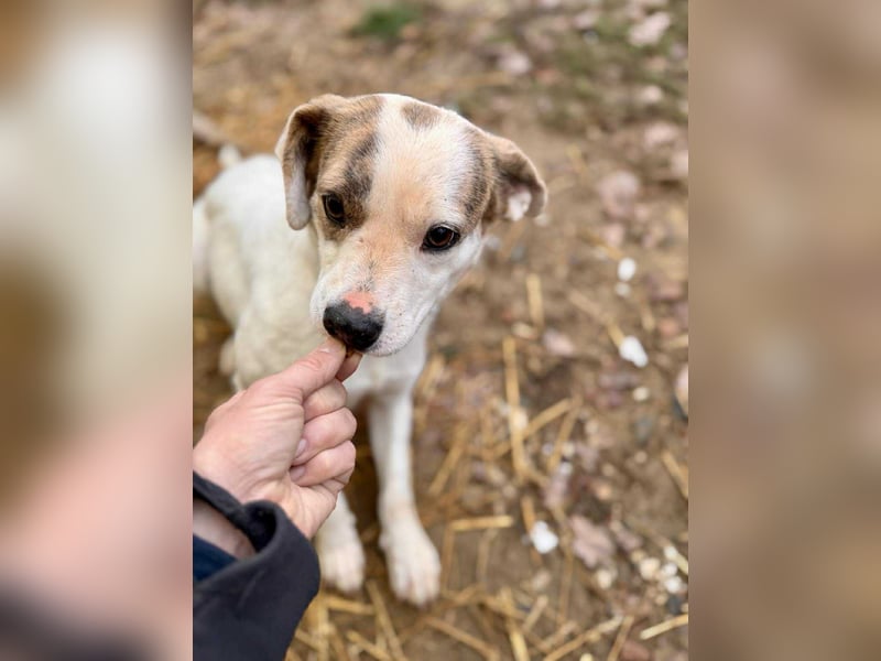 Tofu ist ein freundliches und aufgewecktes, aber auch noch etwas schüchternes Hundemädchen. Sie ist welpentypisch noch unerfahren, aber sehr verspielt und neugierig. Berührungsängste mit Menschen hat sie keine.
