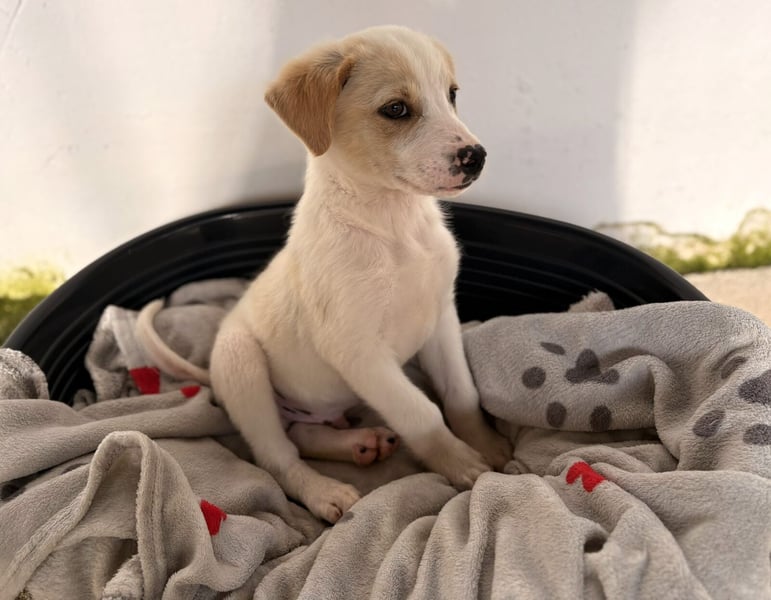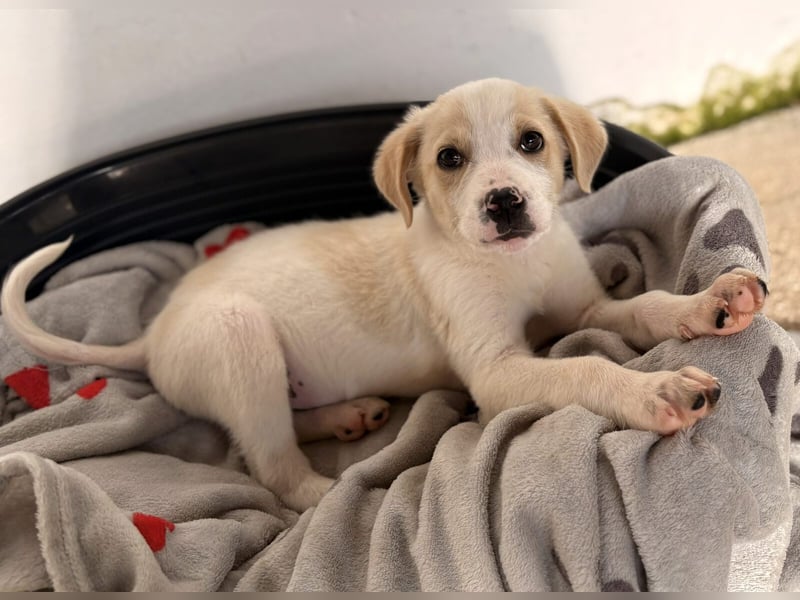 Welpenjunge Nima wurde zusammen mit seiner Mama Nea und Schwester Alba im Alter von wenigen Wochen in einem griechischen Dorf gefunden. Da das Leben auf der Straße für Welpen sehr gefährlich ist und die Mama sehr erschöpft war, kam die kleine Familie in unser Kooperationstierheim und wurde dort umfassend versorgt. Woher die drei ursprünglich kommen, können wir leider nicht sagen. Wir gehen davon aus, dass sie auf der Straße geboren wurden.