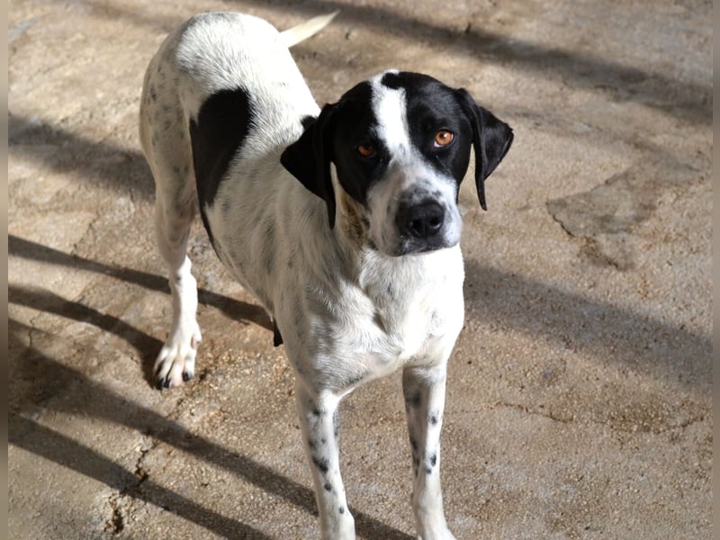 Wir weisen darauf hin, dass es sich bei Nea um einen unbekannten Rassemix handelt. Wir vermuten bei Nea einen English Pointer Mix (ohne Gewähr). Damit gehört sie zu den Vorstehhunden, die viel Bewegung und Beschäftigung brauchen, um zufrieden und ausgelastet zu sein. Auch mit einem möglichen Jagdtrieb sollte gerechnet werden.