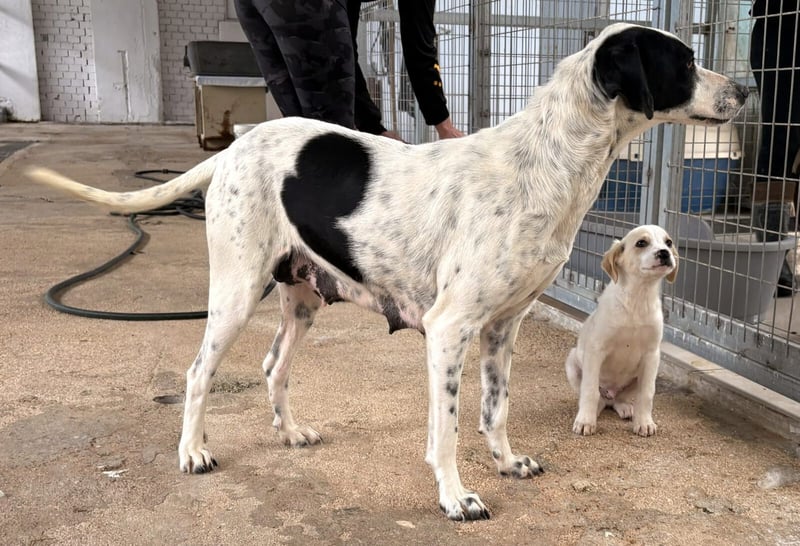 Nea ist die Mutter von Alba und Nima. Die kleine Familie wurde in einem griechischen Dorf gefunden. Da das Leben auf der Straße für Welpen sehr gefährlich ist und die Mama durch die Geburt sehr erschöpft war, kam die kleine Familie in unser Kooperationstierheim und wurde dort umfassend versorgt. Woher die drei ursprünglich kommen, können wir leider nicht sagen. Wir gehen davon aus, dass die Welpen auf der Straße geboren wurden und Mama Nea zuvor auf der Straße gelebt hat. Woher Nea ursprünglich stammt und was sie in ihrem bisherigen Leben erlebt hat, können wir jedoch leider nicht genau sagen. Das Gesäuge wird sich noch weiter zurückbilden.