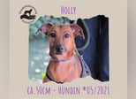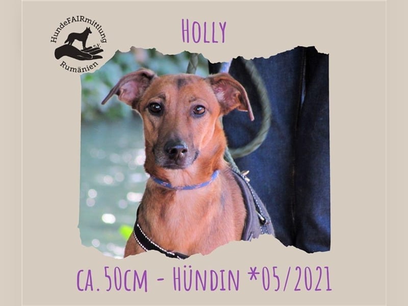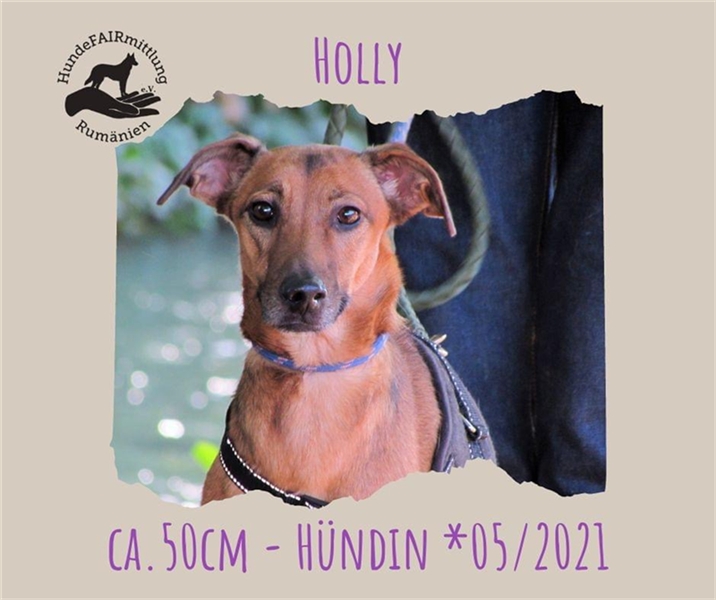 Holly wurde bei einer alten Dame geboren. Sie fand Hollys Mutter hochträchtig und nahm sie mit. Holly liebt es mit ihren Geschwistern zu spielen. Sie ist eine neugierige, junge Hündin, die Anfangs etwas zurückhaltend ist, aber den Kontakt zu Menschen sucht und gerne von ihnen umgeben ist.