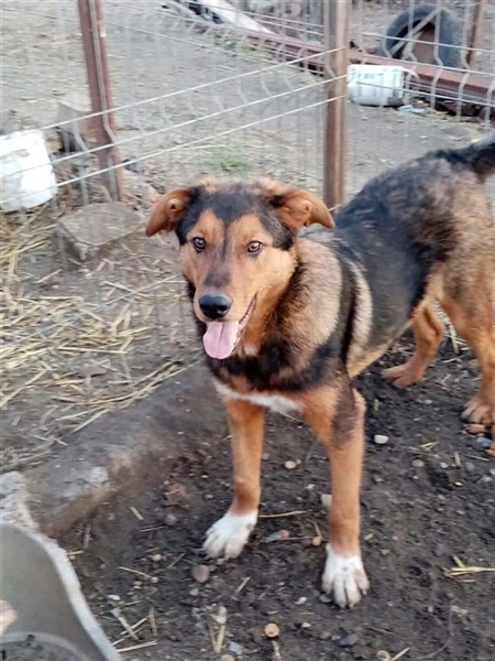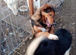 Bruno wurde zusammen mit vielen Welpen auf einem Feld gesichert. Eine großartige kleine Hündin nahm Bruno zusätzlich zu ihren eigenen Welpen auf und brachte alle durch.