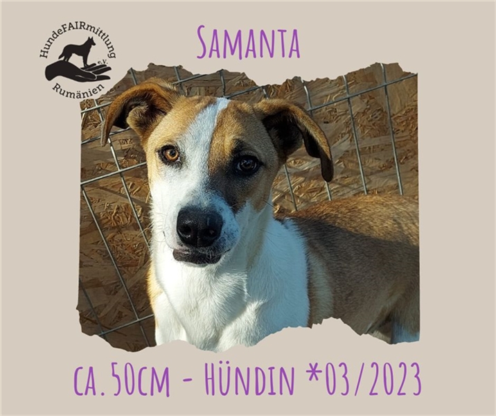 Samanta wurde einfach ausgesetzt. Unsere Tierschützerin fand die hübsche Hündin und nahm sie bei sich auf. Nun ist Samanta in Sicherheit und kann in Ruhe ein schönes Zuhause suchen. Samanta ist eine verspielte, liebevolle und verkuschelte Hündin, die ganz viel Neugierde in sich trägt. Sicherlich kann man mit Samanta viele tolle Momente und Abenteuer erleben, oder ganz entspannt ein paar Streicheleinheiten genießen. Samanta ist eine sportliche und aktive Hündin und hätte sicherlich viel Spaß an langen Spaziergängen oder Hundesport.