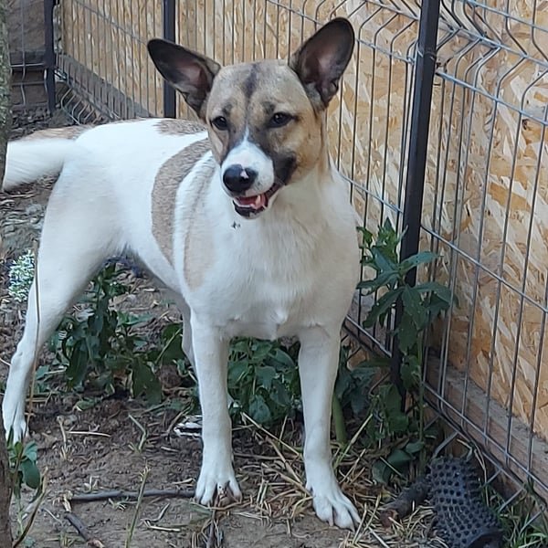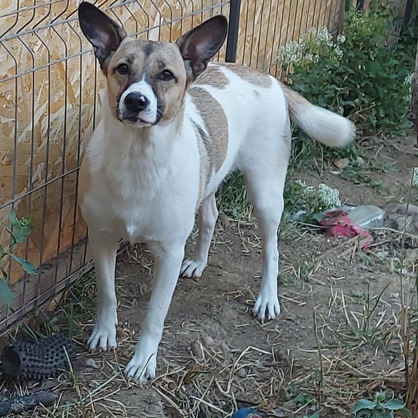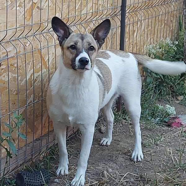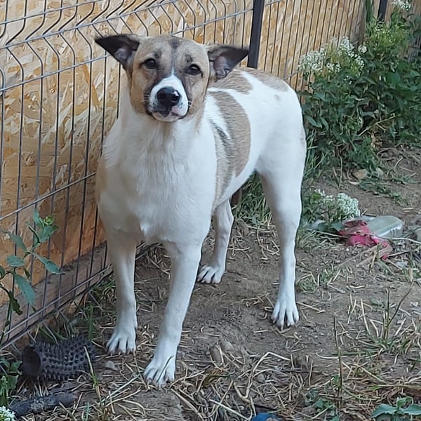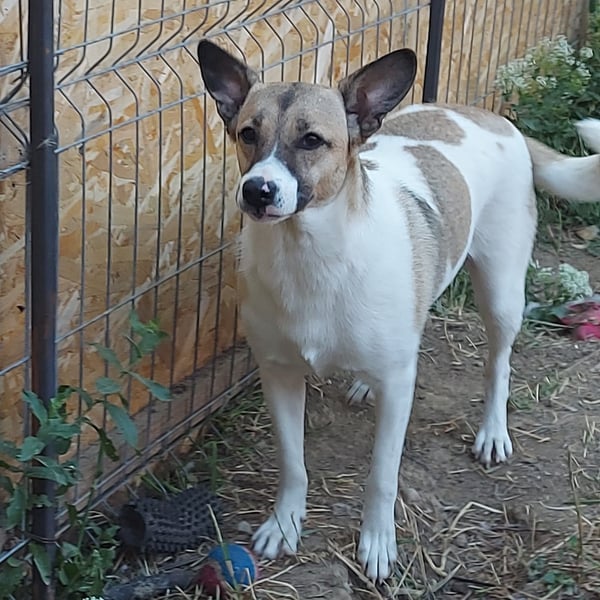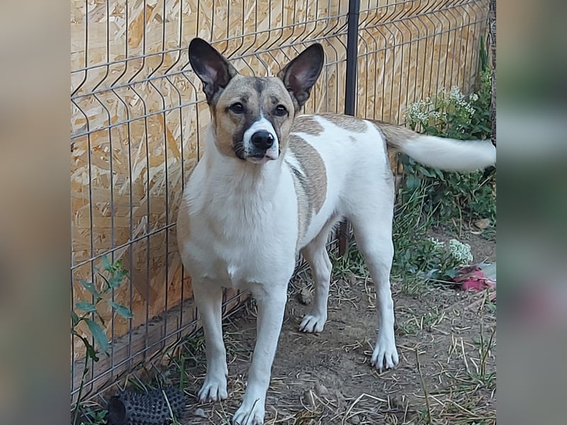 Dies ist die kleine freundliche Vlada. Unsere Tierschützerin fand sie mit einer anderen Hündin auf einem Feld, in der Nähe einer stark befahrenen Straße. Sie nahm beide Hündinnen bei sich auf und nun ist Vlada bereit für ihre Familie. Vlada ist verträglich mit anderen Hunden und auch mit Menschen ist sie offen und neugierig.