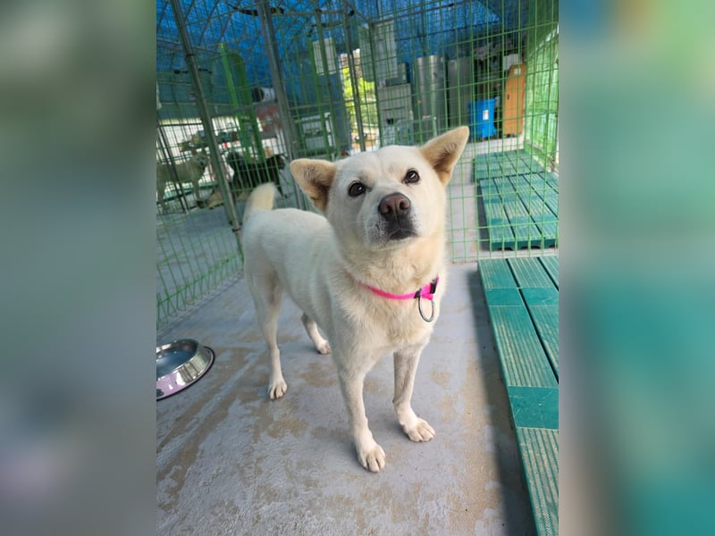 Seola ist eine etwa drei Jahre alte, sterilisierte Jindo-Mix-Hündin, die mit ihrer offenen, freundlichen Art sofort die Herzen erobert. Sie ist sehr aktiv, lebensfroh und liebt es, mitten im Geschehen zu sein. Besonders bemerkenswert ist ihre große Liebe zu Menschen: Seola sucht die Nähe, genießt ausgiebige Streicheleinheiten und zeigt deutlich, wie sehr sie es liebt, gekrault und beachtet zu werden. Aufgrund ihres sanften und freundlichen Wesens kommt sie auch gut mit Kindern zurecht und freut sich über liebevolle Zuwendung.