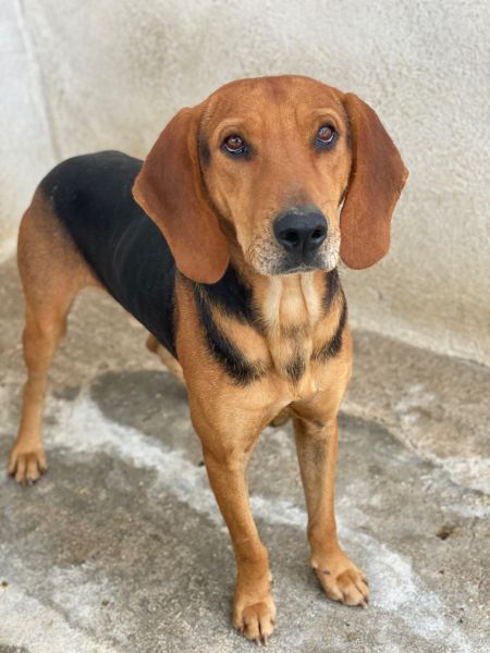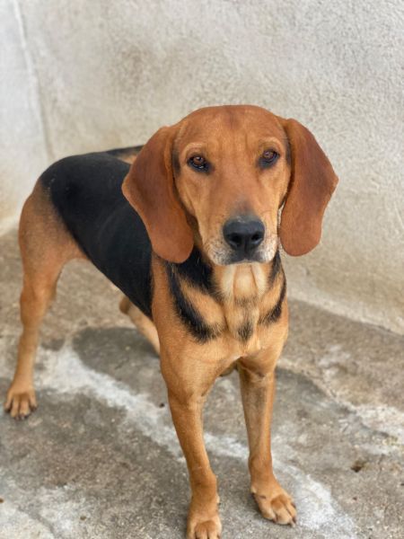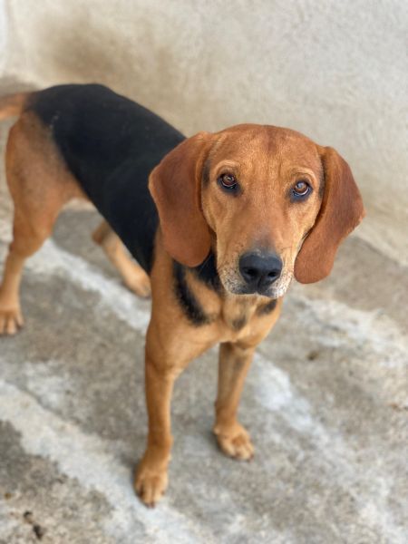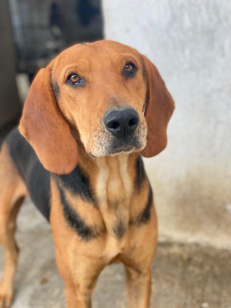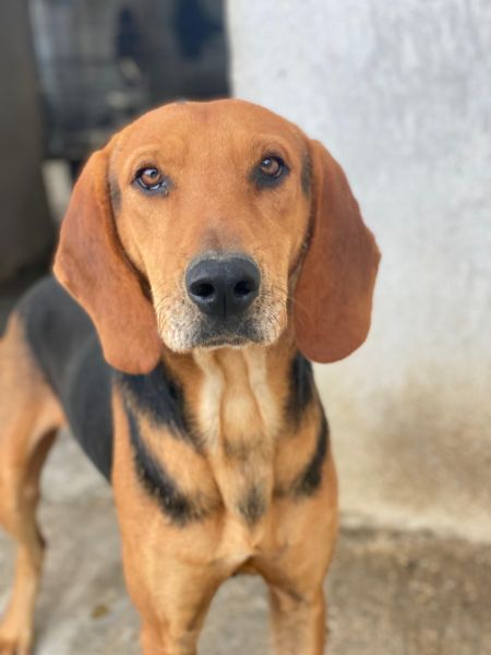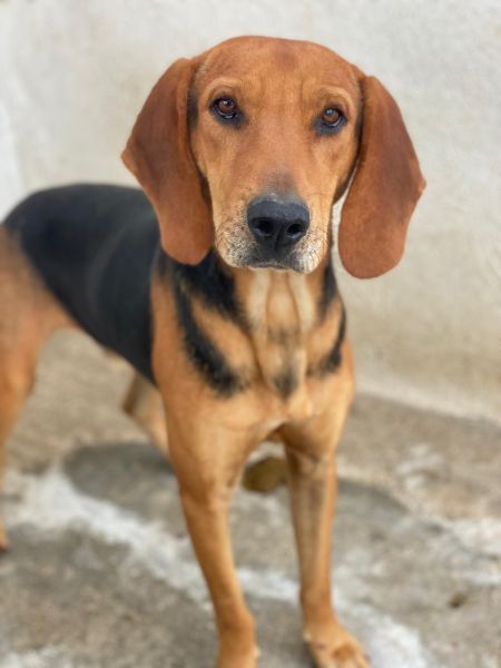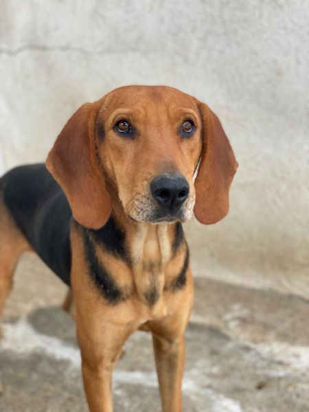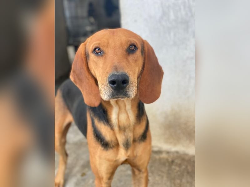 Draven ist ein bildschöner Rüde mit seinem braun-schwarzen Fell und den typischen, langen Jagdhund-Ohren, die ihm einen besonders sanften Ausdruck verleihen. Vom Wesen her ist er freundlich, aufgeschlossen und neugierig – ein Hund, der das Leben und den Kontakt zu Menschen genießt. Er zeigt sich im Tierheim aktuell verträglich, kommt gut mit anderen Hunden zurecht und durfte auch schon Katzen kennenlernen. Draven ist jung, lernfreudig und möchte die Welt entdecken. Da Draven ein Jagdhund-Mischling ist, bringt er einen natürlichen Jagdtrieb mit. Deshalb braucht er konsequente Erziehung, geistige Auslastung und klare Führung, damit er lernt, seine Energie und Instinkte in die richtigen Bahnen zu lenken. Mit liebevoller Anleitung und klarer Führung wird er zu einem wunderbaren Begleiter, der treu an Ihrer Seite steht.