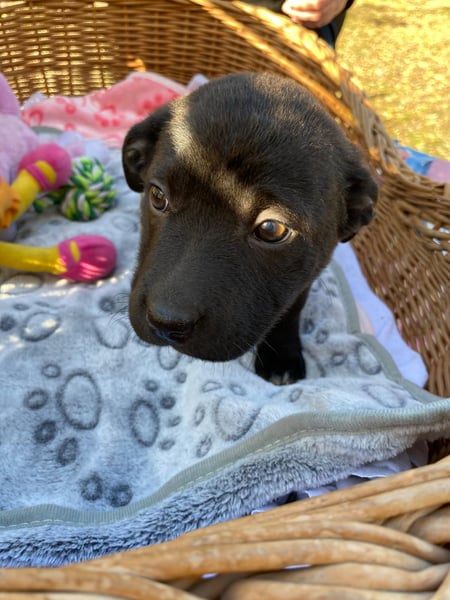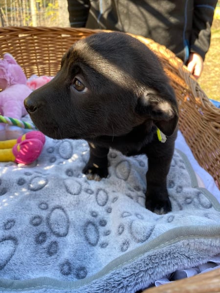 Aktuell ist Mila etwa 20 cm groß und wiegt rund 3,2 kg. Wie ihre Mama wird sie voraussichtlich mittelgroß werden. Mila ist ein aufgewecktes, verspieltes Hundekind, das voller Neugier die Welt entdeckt. Sie liebt es, zu kuscheln, Nähe zu genießen und mit ihren Geschwistern zu spielen.