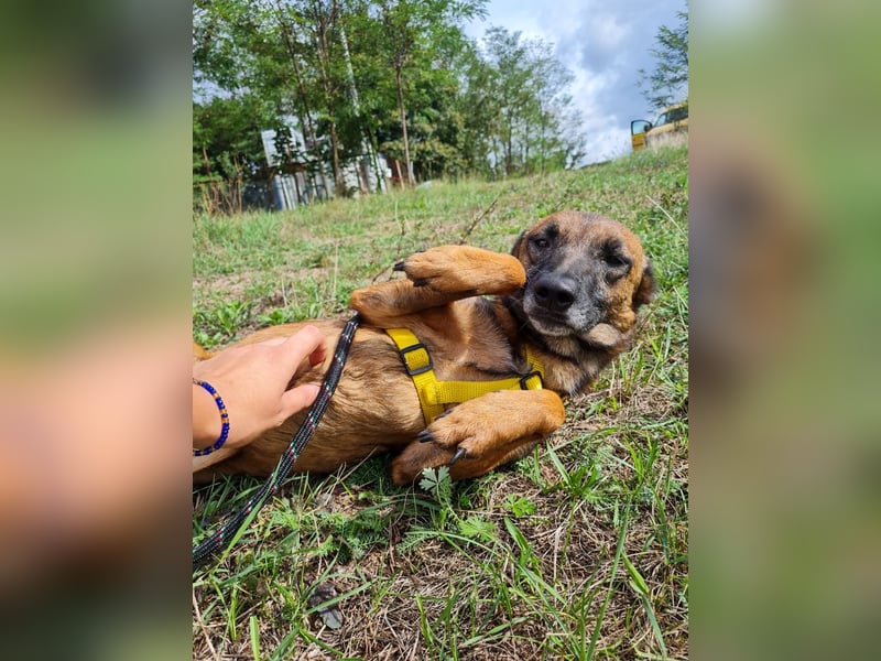 Ich bin eine sehr fröhliche, aktive junge Hündin, die ihr Leben von ganzem Herzen liebt und am liebsten voll auskosten möchte! Hier im Tierheim bin ich eigentlich ständig auf Achse, erkunde den Auslauf, spiele mit meinen Freunden oder hole mir Streicheleinheiten bei den Menschen ab. Klar, ich kann auch mal relaxt in der Gegend rumliegen, aber viel lieber möchte ich was erleben! Wie cool wäre es bitte, wenn ich zusammen mit meiner ganz eigenen Familie auf Ausflüge gehen und gemeinsam die große weite Welt erkunden dürfte?! Da hätte ich riesig große Lust drauf. Du auch?!