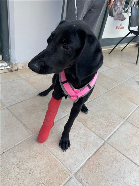 Sofita war einmal wieder eine von unzähligen, ausgesetzten Welpen, die das Pech hatte und von einem Auto angefahren wurde. Sie lag hilflos neben einer Werkstatt und konnte sich kaum bewegen. Die Angestellten der Werkstatt riefen uns an und wir brachten die Kleine sofort zum Tierarzt. Dort wurde eine Fraktur am Vorderbein festgestellt. Sie musste sechs Wochen eine Beinschiene tragen und bekam strikte Boxenruhe verordnet. Das Warten hat sich gelohnt! Ihr Bein ist inzwischen wieder gut verheilt.