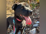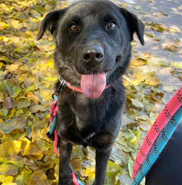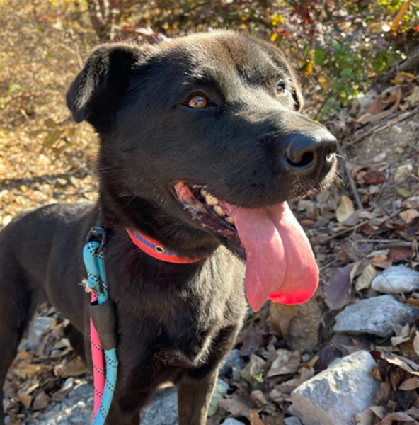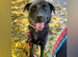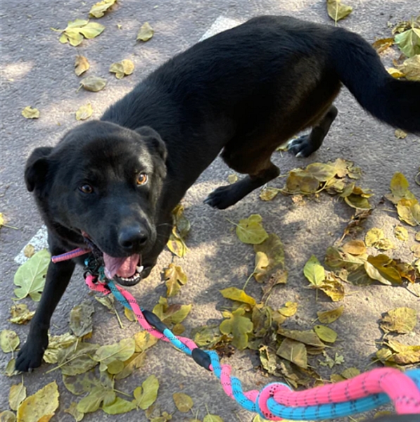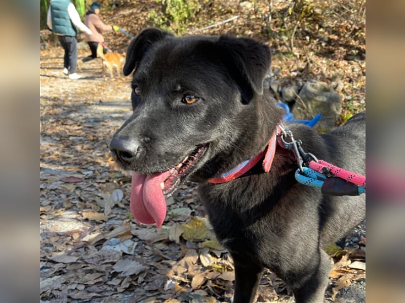 Holly ist ein entzückendes schwarzes Labrador Retriever-Mädchen (möglicherweise ein Jindo-Mix), das Anfang Dezember 2021 ins Tierheim gekommen ist.