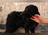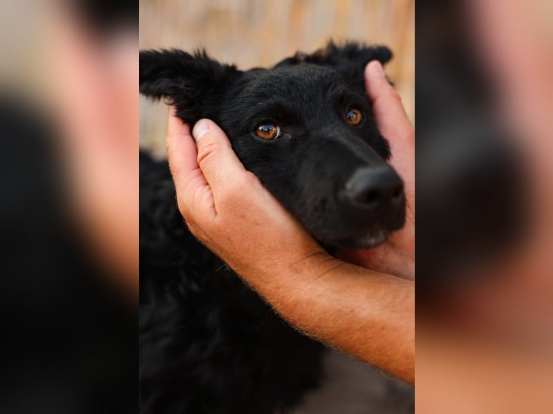 Heute ist Rem bereit für ein neues Kapitel. Sein lockiges, glänzendes Fell erinnert an dunkle Wellen im Abendlicht, und seine warmen, bernsteinfarbenen Augen verraten seine Seele: treu, aufmerksam und tief. Wer ihm in die Augen schaut, sieht sofort – da steckt ein Hund, der liebt, vertraut und verstanden werden will.