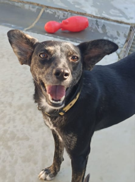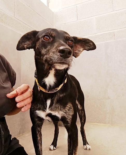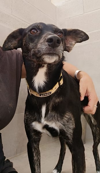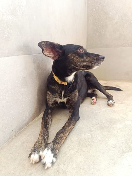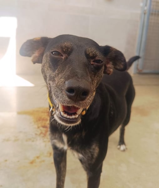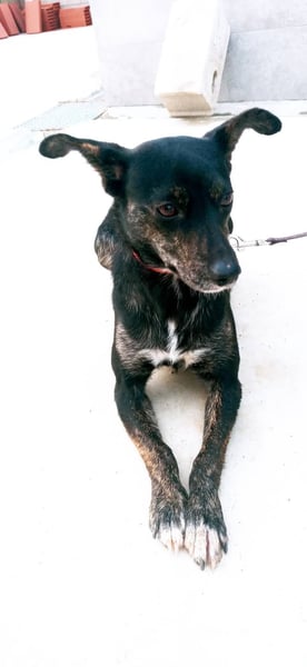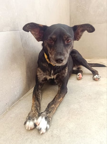 Candy ist eine Pinscher-Mischung und wurde geschätzt Anfang 2024 geboren. Candy ist kastriert und ihre Analysen sind negativ, was bedeutet, dass sie gesund ist und keine Krankheiten wie Leishmaniose oder Erlichiose hat. Sie wohnt immer noch im Tierheim unserer Freunde in Linares und wartet sehnsüchtig darauf, von einer liebevollen Familie adoptiert zu werden.