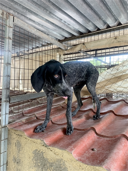 Sie wurde von einem Tierschützer auf Rhodos mitten im nirgendwo mit ihren Welpen gefunden. Jemand scheint sie ausgesetzt zu haben.