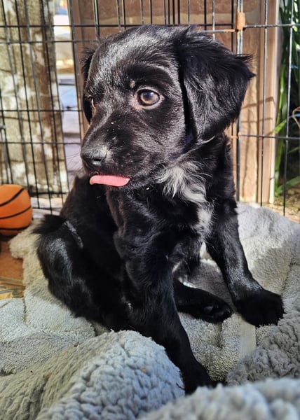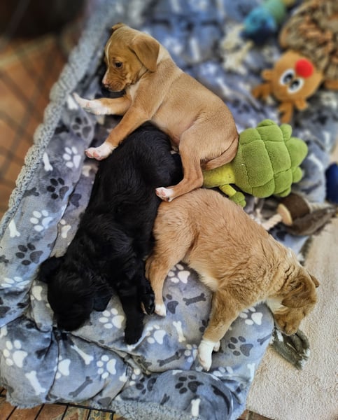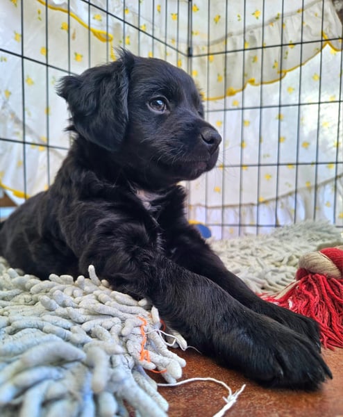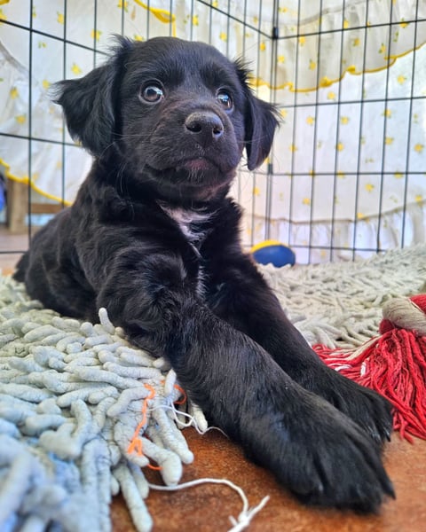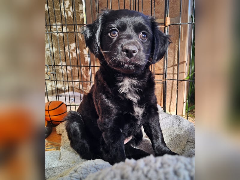 Meine Pflege-Mama sagt, ich sei ein kleiner Clown. Ich spiele gerne mit meinen beiden Geschwistern, bin neugierig und sorge bestimmt für den ein oder anderen Lacher. Gleichzeitig kuschle ich für mein Leben gern und suche immer die Nähe zu meinen Menschen. Ich bin ein fröhlicher Welpe, der die Welt entdecken und viel lernen möchte – gerne auch mit Dir zusammen in einer Hundeschule.