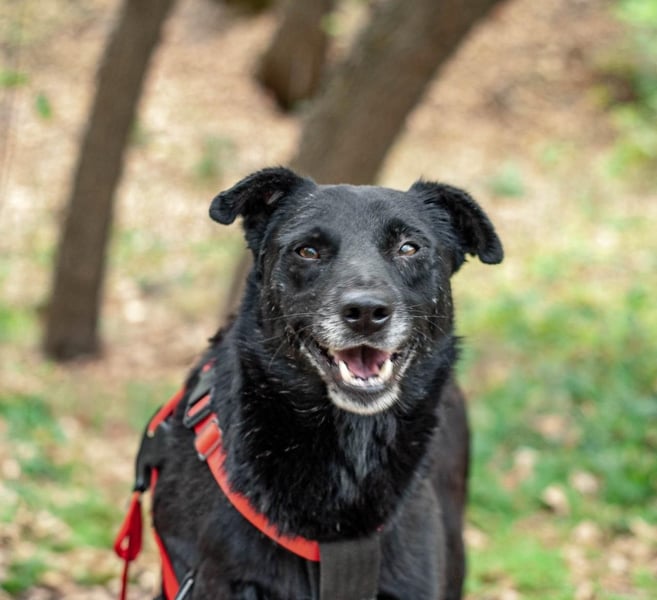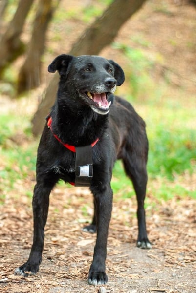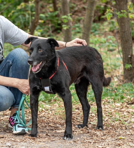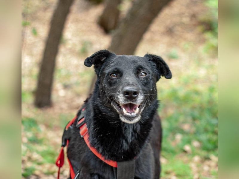 West (etwa 6 Jahre alt und 17 kg) ist ein ruhiger und liebevoller Typ. Am liebsten genießt er entspannte Spaziergänge an der Seite seiner Menschen. Bei jeder Gelegenheit hält West seinen Rücken zum Kraulen entgegen und freut sich über Streicheleinheiten. Der tolle Rüde verträgt sich wunderbar mit anderen Hunden und kommt auch mit Katzen super aus.