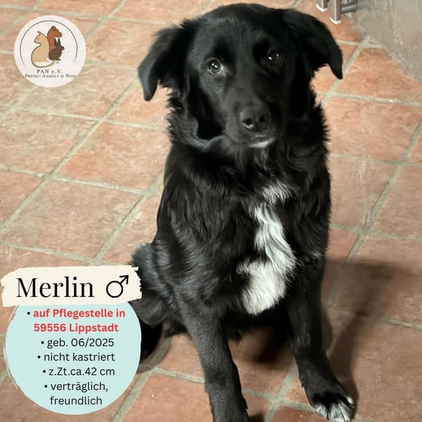 Merlin, geboren am 15.06.2025 lebt derzeit auf einer Pflegestelle und zeigt sich dort als offen, aufgeschlossen und sehr menschenbezogen. Er begegnet neuen Situationen neugierig und freundlich und genießt den Kontakt zu seinen Bezugspersonen sehr.