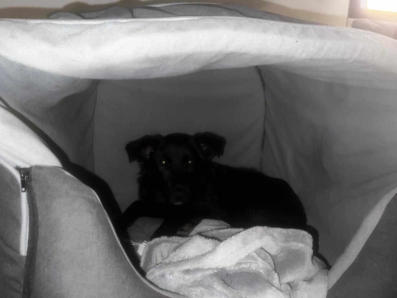 Smilla ist eine ca. 5 Monate junge Hündin, die gemeinsam mit ihren Geschwistern auf einem Fabrikgelände gefunden wurde. Sie hatte vor ihrer Ankunft in der Pflegestelle kaum engen, freiwilligen Kontakt zu Menschen. Entsprechend bringt sie keine schlechten Erfahrungen mit – sondern schlicht Unerfahrenheit.