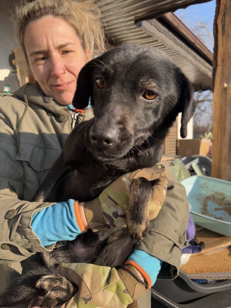 Es brauchte Zeit und Geduld, um das Vertrauen der verängstigten Hündin zu gewinnen. Floriela setzte sich ruhig in einiger Entfernung hin und sprach sanft mit ihr. Stück für Stück wagte sich Beryll näher, bis sie schließlich den Mut fand, Florielas Hand zu beschnuppern. So begann Berylls Reise in ein neues Leben, weg von Angst und Unsicherheit, hin zu Wärme und Geborgenheit.