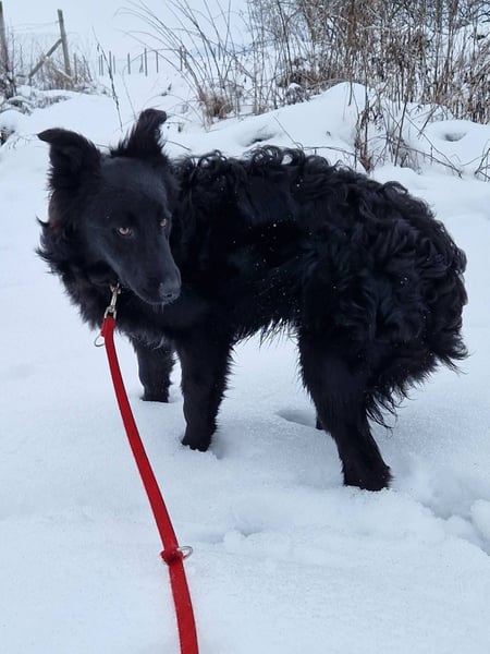 Tom wurde zusammen mit fünf weiteren Welpen auf einem Feld, fernab von jeder menschlichen Siedlung, gefunden. Sehr wahrscheinlich wurden die kleinen Hunde dort einfach ausgesetzt und ihrem Schicksal überlassen.