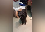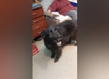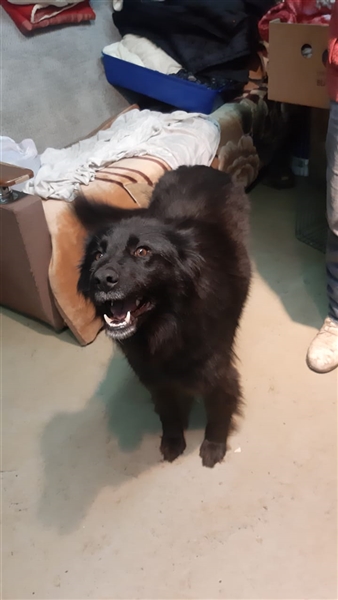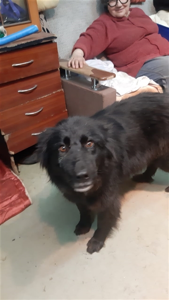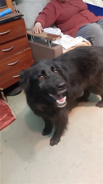 Nataschka, ein sehr schöner Schäferhund-Mix mit langem schwarzem Fell und braunen Augen, wurde mit ihren Welpen an einer stark befahrenen Straße gefunden, vermutlich ausgesetzt, weil sie die Welpen bekommen hat. Leider sind alle Welpen gestorben, aber Nataschka konnte gerettet werden.