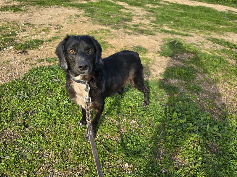 Aufgeregt wartet er in seinem kleinen Käfig auf einen Gassigänger. Leider passiert das nur ein -höchstens zweimal am Tag. Wenn er dann draußen ist, weiß er nicht, was er zuerst machen soll: spielen, rennen, kuscheln.