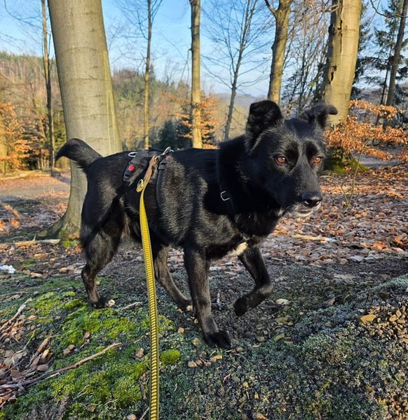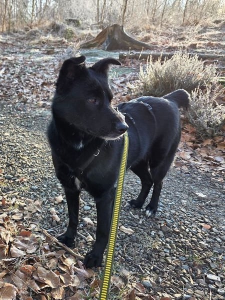 Kindra ist eine liebenswerte, unkomplizierte, menschenbezogene, zutrauliche und verschmuste, lackschwarze Hündin. Sie war bereits am ersten Tag stubenrein und schläft entspannt die Nächte in ihrem Körbchen durch. Schnell hat sie sich an die Abläufe gewöhnt und ist schon freudig dabei, sobald man Geschirr und Leine in die Hand nimmt. Mit etwas mehr Kondition werden die Gassi-Runden sicher bald größer und Kindra könnte somit das ein oder andere Pfund noch verlieren. Im Moment ist sie noch eine kleine Speckbohne ;-) In der Hoffnung auf ein paar Streicheleinheiten bietet sie Sitz und Pfötchen geben an. Im Haus verhält sie sich ruhig und unauffällig; im Garten flitzt sie gerne ihre Runden und fordert die anderen Hunde der Pflegestelle zum Spielen auf. Somit wäre ein vorhandener Hund im Neuen zu Hause sicher kein Problem. Aber auch ein Einzelprinzessin wäre sie glücklich.