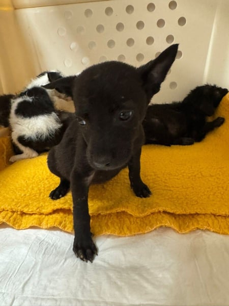 Die Welpen waren erst wenige Wochen alt und in einem besorgniserregenden Zustand. Sie waren völlig durchnässt, voller Parasiten, dehydriert, total entkräftet, ausgehungert, viel zu dünn und unterernährt. Außerdem hatten sie mehrere entzündete Hautstellen.