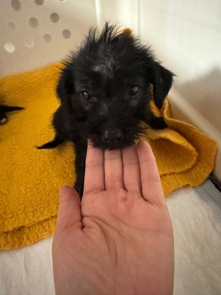 Die Welpen waren erst wenige Wochen alt und in einem besorgniserregenden Zustand. Sie waren völlig durchnässt, voller Parasiten, dehydriert, total entkräftet, ausgehungert, viel zu dünn und unterernährt. Außerdem hatten sie mehrere entzündete Hautstellen und Durchfall.