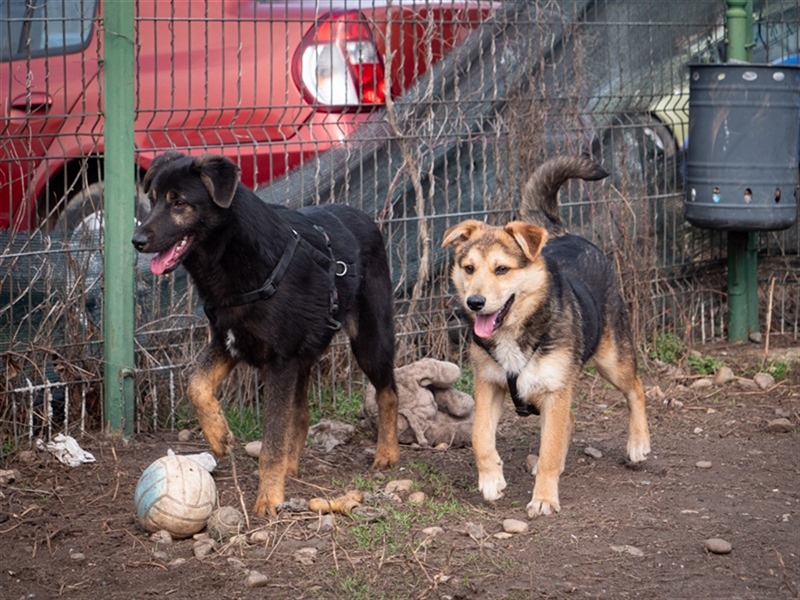 waren durch die Situation erst einmal ziemlich verängstigt und nach der Eingangsuntersuchung im Tierhein verkrochen sie sich gemeinsam in einer Ecke, um sich gegenseitig Schutz zu geben. Sie teilen sich einen Welpenzwinger mit anderen Welpen, in dem sich wohl schnell „herumgesprochen“ hat, dass sie nun in Sicherheit sind. Nach der anfänglichen Zurückhaltung wird nämlich nun langsam die neue Umgebung erkundet.