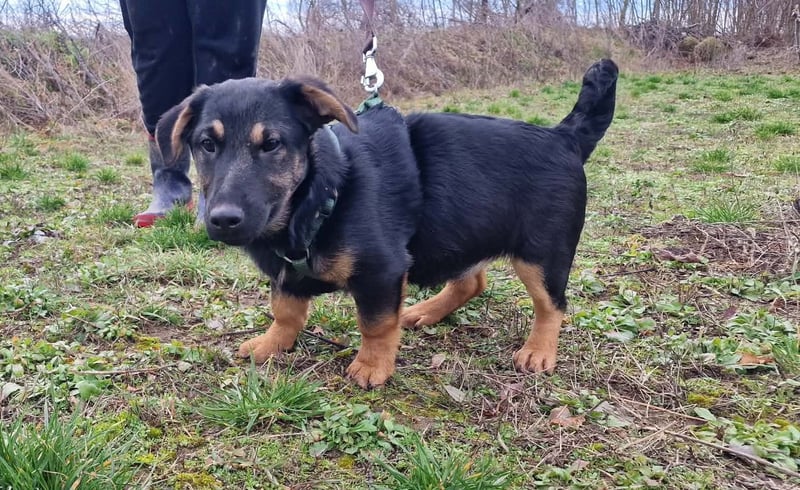 Die Welpen sind ein sehr spannender Mix mit teilweise sehr kurzen Beinchen. Und ein Schäferhund hat vermutlich auch mit vorbei geschaut. Insgesamt werden die Welpen aber vermutlich nur mittelgroß.