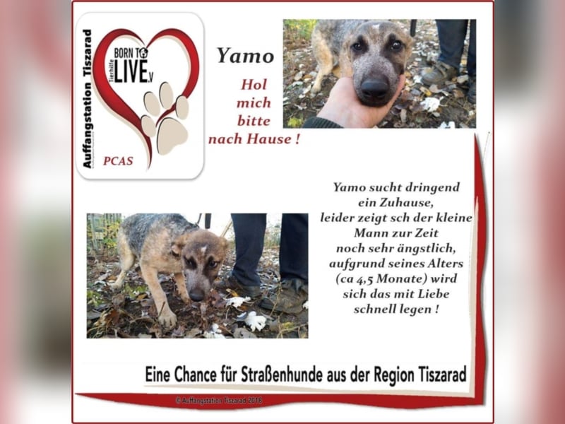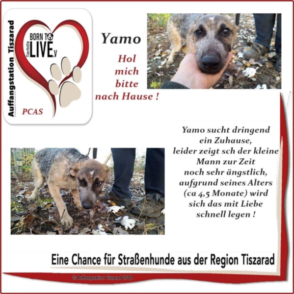 Unsere lieber Yamo ist ein ca. 8-9 Wochen alter Mix-Rüde welchen wir mit seiner Mama Emma sowie ihren 5 Geschwistern (Cara, Bernie , Kasa, Tilda & Bonnie ) in letzter Minute aus der schrecklichen ungarischen Tötung Edeleny gerettet und in Tiszarad in Sicherheit gebracht haben.