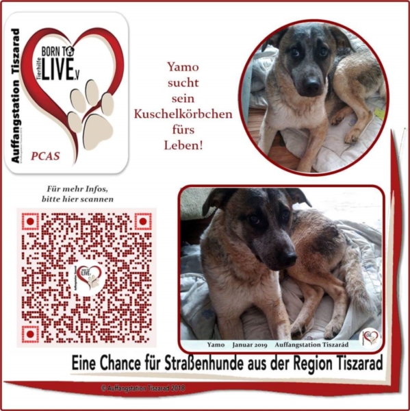 Yamo zeigt sich welpentypisch verspielt und kann aufgrund seines Alters noch leicht an Neues wie z.B Kinder oder Katzen gewöhnt werden.