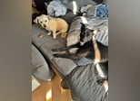 An ihrer Stubenreinheit wird gearbeitet. Sich draußen zu lösen, fällt ihr noch schwer, im Haus benutzt sie ihre Trainingsunterlagen.